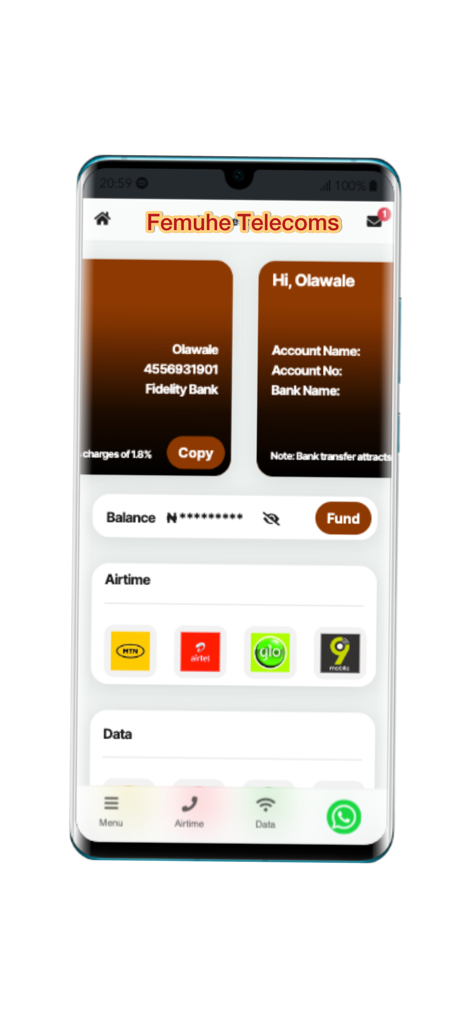 Buy internet subscription of all networks (MTN, Airtel,Glo,9mobile) within seconds. You can recharge any network of your choice from Femuhe Telecoms Payment Solution